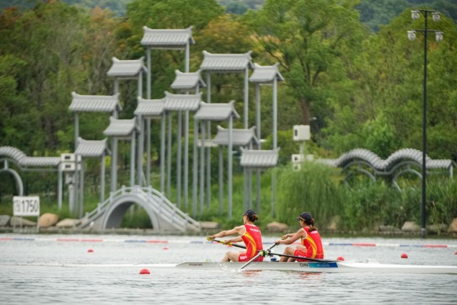 9月20日,杭州亚运会赛艇项目预赛比赛在浙江省杭州市富阳水上运动中心开赛。新华社记者 江汉 摄