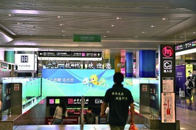 9月22日,杭州亚运会开幕之际,杭州东站内处处充满亚运元素。本报记者 陈城摄/光明图片