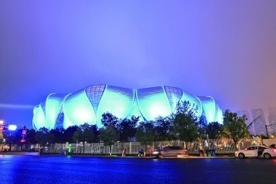 9月22日,夜色中的杭州奥体中心体育场“大莲花”。本报记者 杨震摄/光明图片
