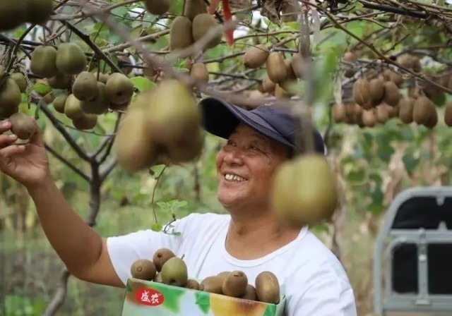 9月14日,农民在河南省驻马店市驿城区诸市镇石庄村猕猴桃种植园采摘猕猴桃。