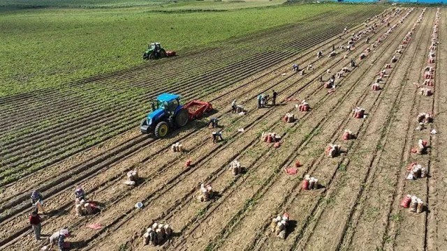 9月3日,河北省围场满族蒙古族自治县御道口镇御道口村一家马铃薯种植合作社社员在收获马铃薯。