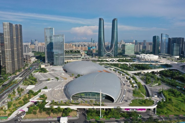 这是2023年6月28日拍摄的杭州奥体中心游泳馆、体育馆(无人机照片)。新华社记者 黄宗治 摄