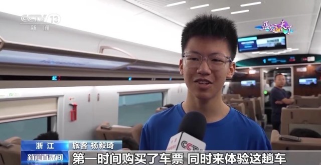 旅客 尹张涵:说真的是非常激动,今天早上特地从上海坐最早一班车赶过来的。和普通的复兴号来对比的话,它的舒适度肯定是有一定的提升。