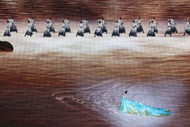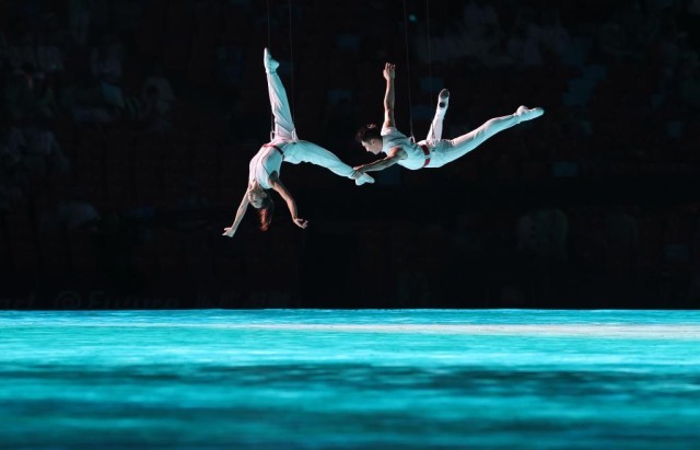 裸眼3D、AR数字穹顶、3D双威亚、流体计算和185米宽、15米高的网幕等技术,实现了立体美学和东方美学的融合,也实现了技术和艺术的双向奔赴。