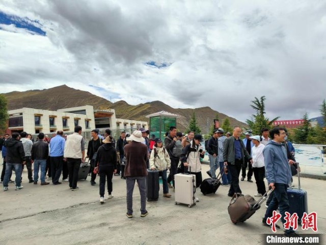 9月23日,乘坐高原复兴号动车组列车的乘客抵达拉萨火车站。中新社记者 江飞波 摄
