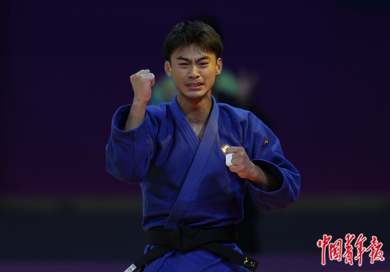 9月24日,中国台北柔道选手杨勇纬获得杭州亚运会男子柔道-60公斤级冠军。中青报·中青网记者 李隽辉摄
