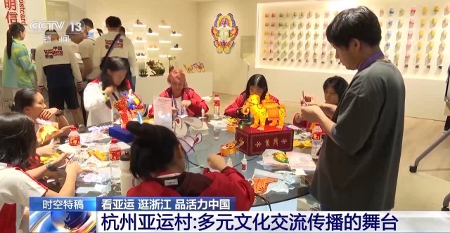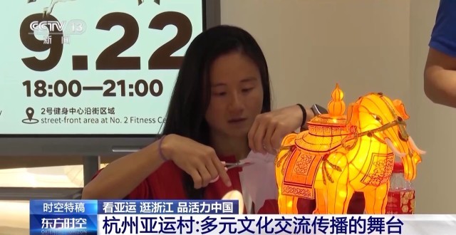 说到杭州市余杭区的风筝名气由来已久,早在2014年就入选了《杭州市非物质文化遗产保护名录》。在运动员村的文化屋,这些非遗文化它不是静态的,它是动态、活态的。每天都会有种类不同的非遗文化体验课在这里上演,而且现场会有一个时刻表,像现在正在进行的是“深澳灯彩”非遗文化体验课,什么是深澳灯彩?它源自杭州市桐庐县的深澳村,是当地村民在非常重要的节庆时刻制作的一种民俗文化用品。
