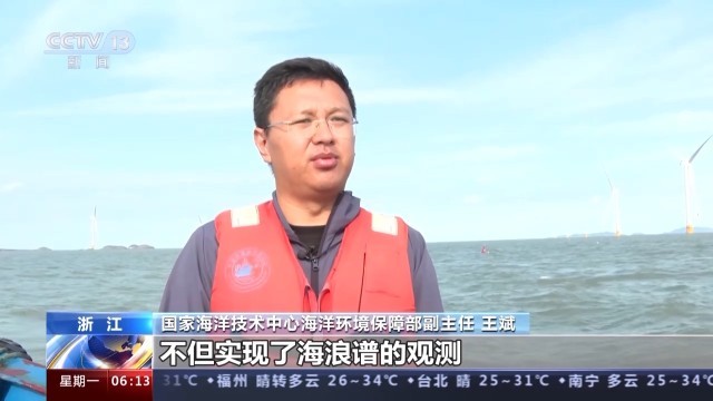 总台央视记者 邵海成:我现在是在浙江省象山县的外海域,大家顺着我手指的方向,我国自主研发的前哨波浪谱浮标,它可以高精度实时提供风浪、涌浪、混合浪等综合海洋环境信息,为杭州亚运会帆船比赛提供数据支撑。