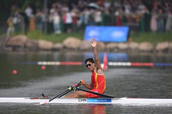 9月25日,中国选手张亮获得杭州亚运会男子单人双桨比赛金牌。视觉中国供图