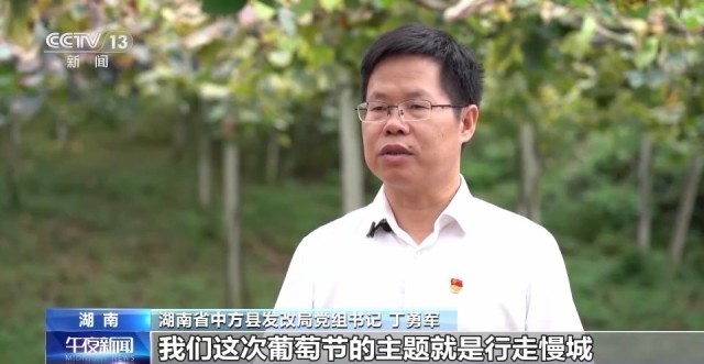 湖南省中方县发改局党组书记、局长丁勇军:我们这次葡萄节的主题就是行走慢城,就是希望大家放松下来,享受特色农旅。