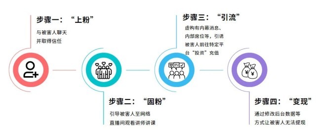 接下来,讲师会通过虚构有内幕消息、内部席位等情节,将被害人“引流”至团伙自制的“长盛资本”“瑞达资产”“汇利资产”等平台“投资”充值,后把握时机,通过修改后台数据等方式让被害人无法提现,却成为他们的“变现”时刻。至案发时,该团伙已诈骗多名被害人,犯罪金额共计人民币500余万元。