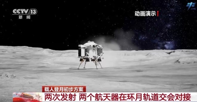 载人登月初步方案:航天员进入月面着陆器落月 开展月面活动