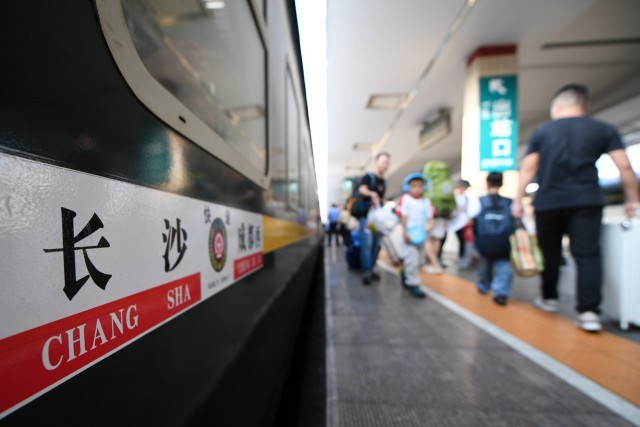 9月29日,旅客在长沙火车站站台准备乘车。 新华社 图