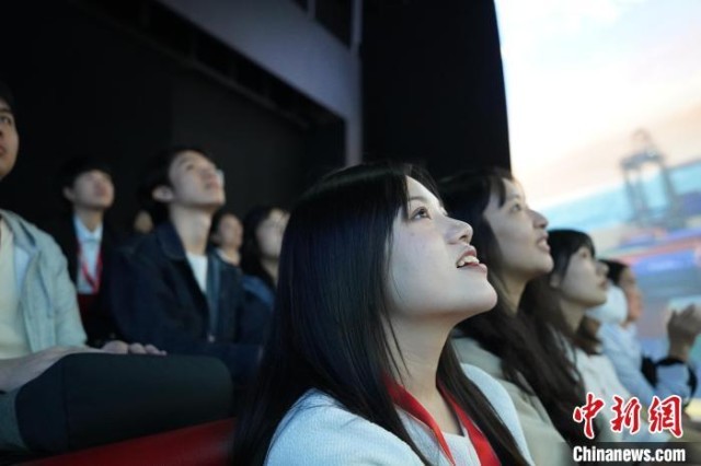 9月30日,四十余位台湾青年参观中国共产党历史展览馆,体验“4D+6面”全景影院。张杨彬 摄