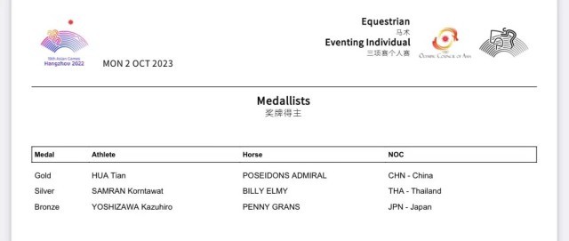 中国马术亚运历史首金 华天领衔中国马术队完成零的突破
