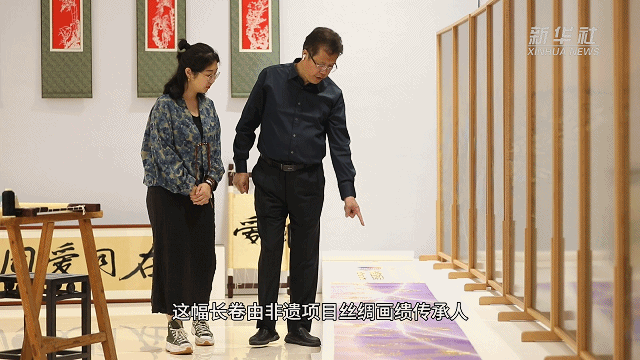 在杭州第19届亚运会主媒体中心场馆内,一幅由“丝绸画缋”工艺制成的《潮涌·新时代》吸引了人们的关注。这幅长卷由非遗项目“丝绸画缋”传承人——叶建明、叶沣仪父女合力创作。