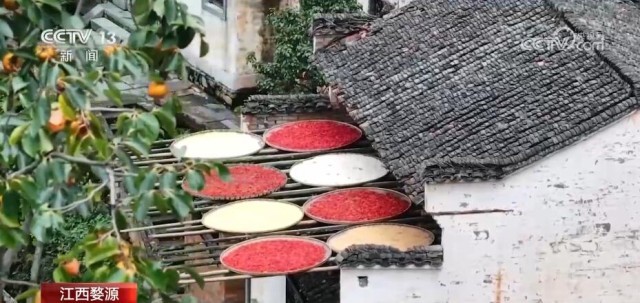 江西婺源:粉墙黛瓦柿子黄 “崖上古村”晒秋忙