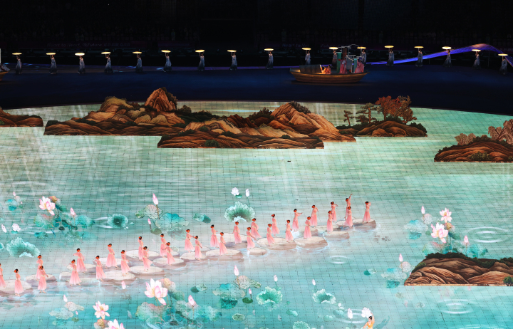杭州亚运会开幕式上烟雨江南西湖莲开。图源新华社
