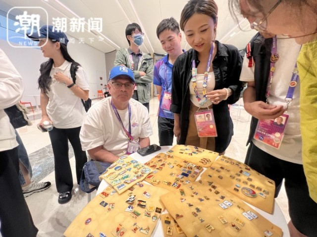 有人说,因为亚运会,“换pin”(交换徽章)成为今年最酷最流行的社交方式。主媒体中心一角的自助换章机前总是排起长队。印度记者赫曼特·夏尔马告诉记者,他从2003年开始从事体育报道,这是第一次见到交换徽章的智能平台。因为馆内商店的西湖十景系列已经断货,他把希望寄托在机器“盲盒”,他说:“来中国,当然要带回最能代表中国文化的徽章!”