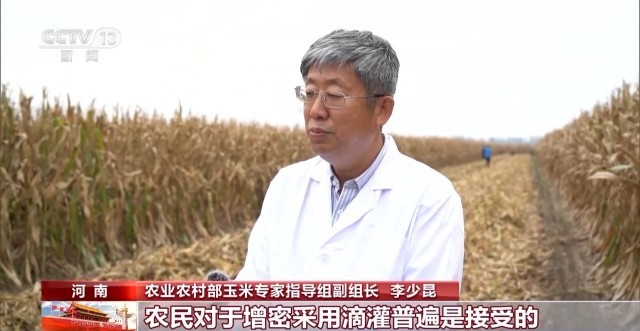 农业农村部玉米专家指导组副组长 李少昆:农民对于增密、采用滴灌普遍是能够接受的,这为明年大面积推广奠定了非常好的基础。