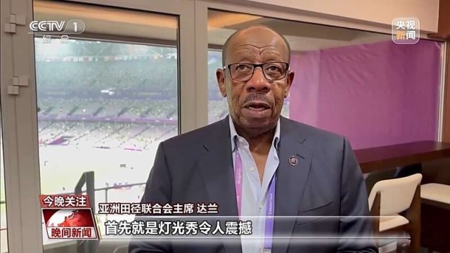 亚洲田径联合会主席 达兰:首先就是灯光秀,令人震撼。其次对于全场观众的鼓舞,令人印象深刻。而且大家的欢呼不仅针对中国运动员,更是在支持所有国家和地区的运动员。