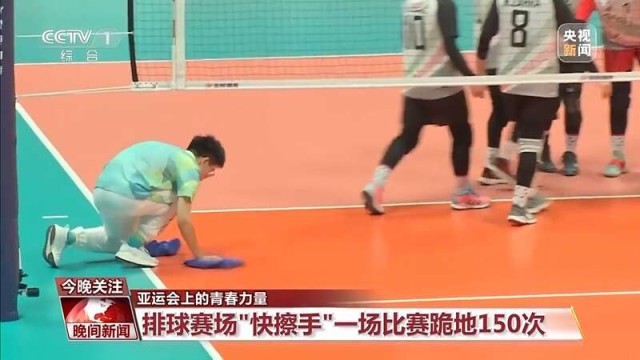 起身疾跑、单膝下蹲、双手擦拭,整套动作一气呵成,略带汗渍的地面马上恢复光泽。观看亚运会排球比赛的观众对他们可能并不陌生,他们就是在排球比赛过程中负责擦试场地地面的专业志愿者,大家又亲切地称他们为“快擦手”。