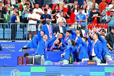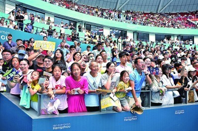 9月29日,杭州亚运会网球女子单打决赛现场,观众在欢呼。本报记者陈城摄 光明图片