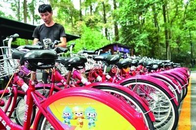 杭州共享单车上的亚运会吉祥物图案。本报记者陈茵摄 光明图片