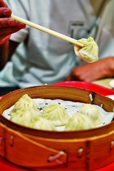 一名游客在吃杭州小笼包。本报记者 陈茵摄/光明图片