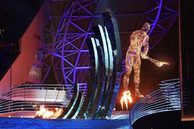 9月23日,数字火炬手在点燃主火炬。新华社记者 刘续 摄