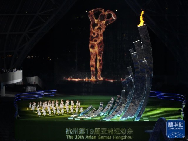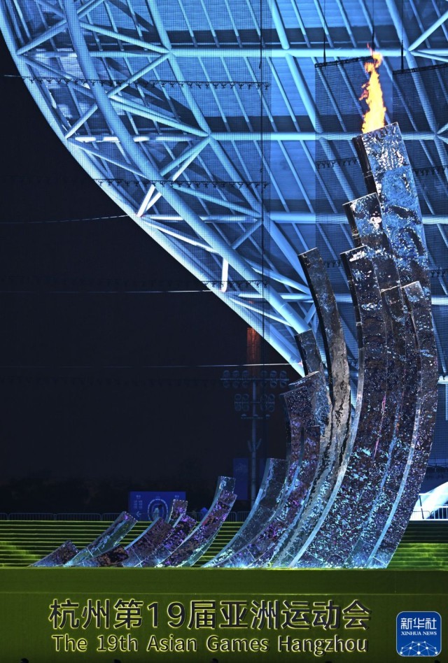 ↑这是10月8日拍摄的亚运会主火炬。新华社记者 陈晔华 摄