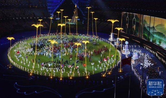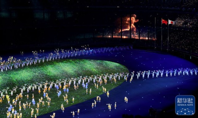 ↑各代表团在闭幕式上入场。新华社记者 杨磊 摄