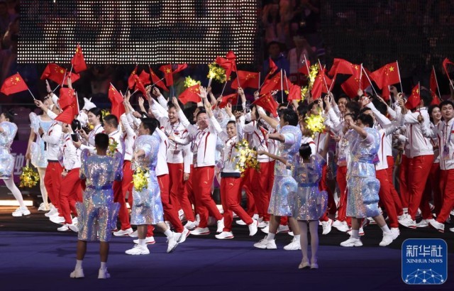 ↑中国体育代表团在闭幕式上入场。新华社记者 孟晨光 摄