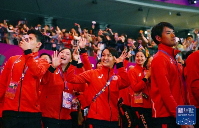 ↑日本体育代表团在闭幕式上入场。新华社记者 陈钟昊 摄