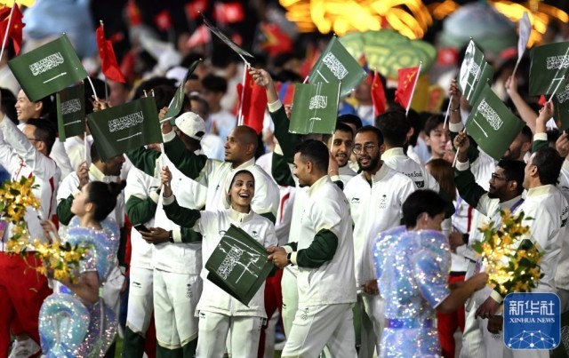 ↑沙特代表团成员在闭幕式上。新华社记者 杨冠宇 摄
