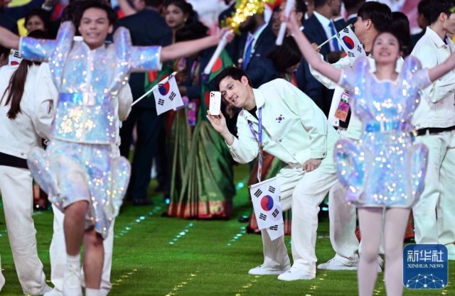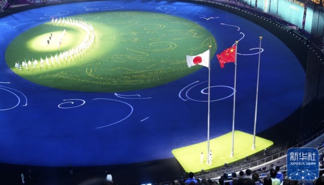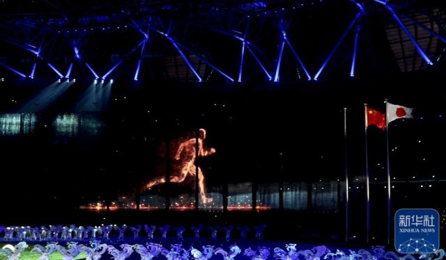 ↑下一届亚运会主办国日本在闭幕式上带来的文艺表演。新华社记者 徐昱 摄