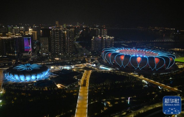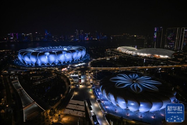 ↑10月8日拍摄的杭州奥体中心体育场。新华社记者 程婷婷 摄