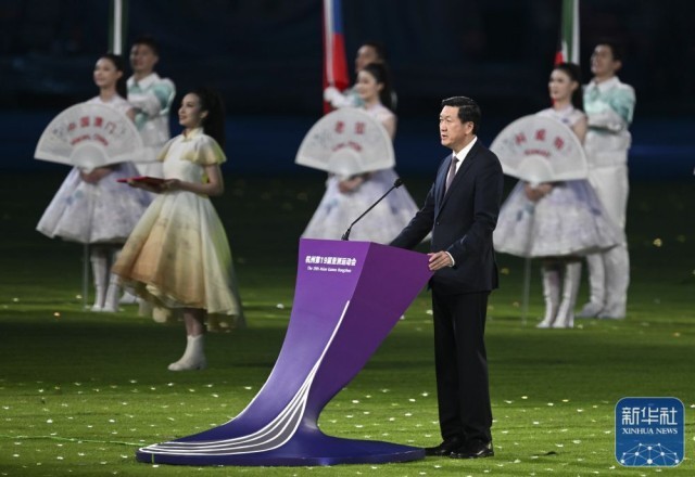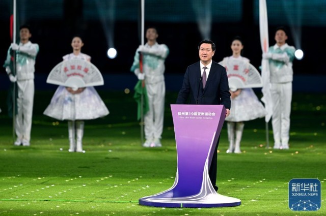 ↑杭州第19届亚运会组委会主席、中国奥委会主席高志丹在闭幕式上致辞。新华社记者 杨磊 摄