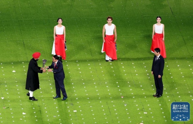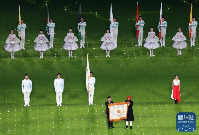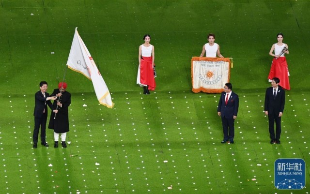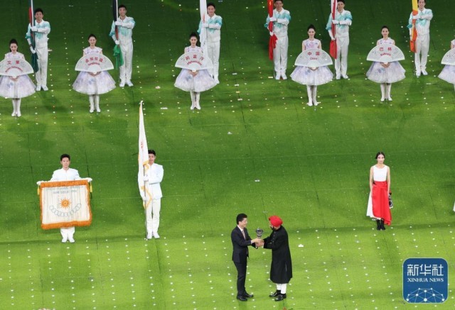 ↑闭幕式上的会旗交接仪式。新华社记者 徐昱