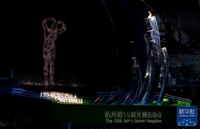 ↑杭州亚运会主火炬在闭幕式上熄灭。新华社记者 杨磊 摄