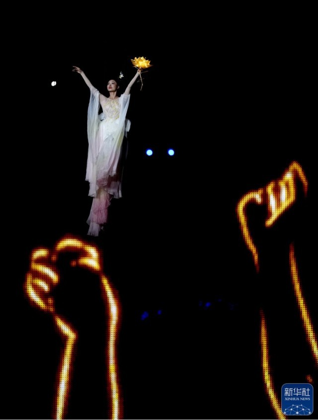 ↑演员在闭幕式现场表演。新华社记者 陈斌 摄