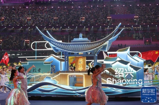 ↑绍兴花车出现在闭幕式现场。新华社记者 张涛 摄
