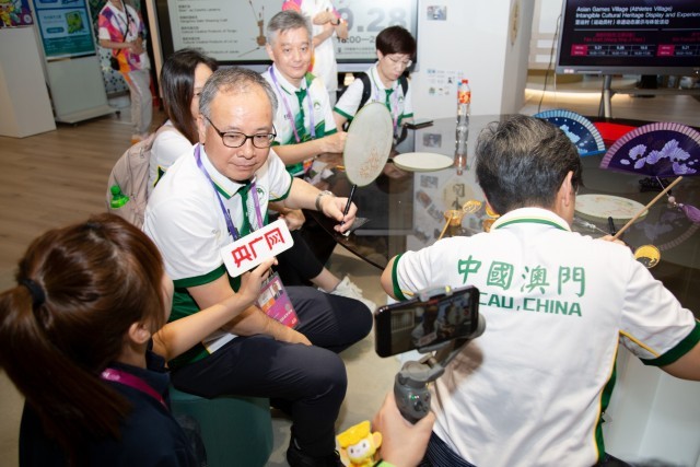 央广网记者采访来文化屋体验的中国澳门代表团成员。