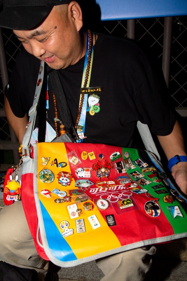 MMC主媒体中心门口,来自北京的徽章收藏爱好者。