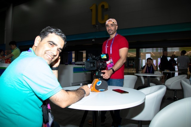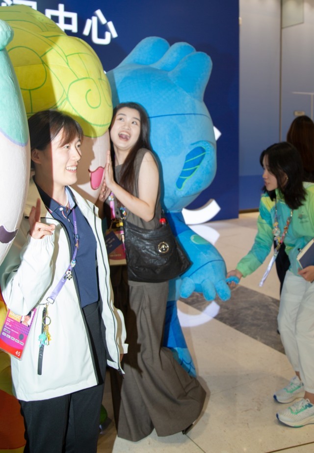 MMC主媒体中心,大家争相和亚运吉祥物合影。