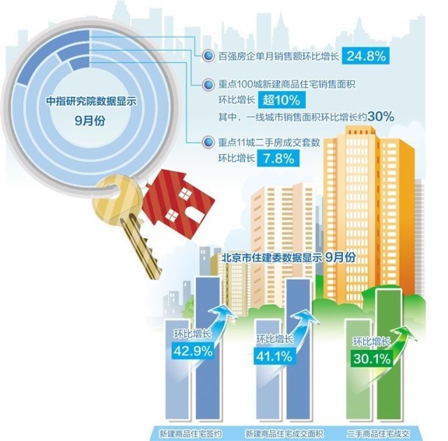 随着需求释放动能减弱,9月后两周成交量明显下降。北京市住建委数据显示,9月份,北京新建商品住宅签约5891套,成交面积67.96万平方米,环比分别增长42.9%和41.1%;二手商品住宅成交14262套,环比增长30.1%。