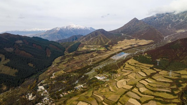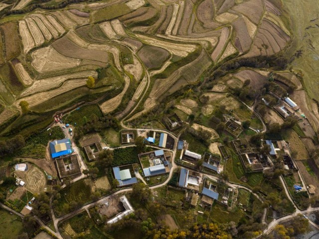 这是10月8日拍摄的贵德县尕让乡关加村一角(无人机照片)。新华社记者 张龙 摄