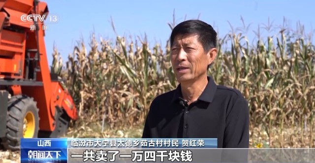 临汾市大宁县太德乡茹古村村民 贺红荣:一共卖了一万四千块钱,今年产量高,收入很好。