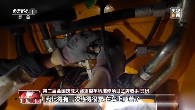 第二届全国技能大赛重型车辆维修项目金牌选手 翁研:我记得有一次练得很累,在车上睡着了。一觉醒来,手上面都是蚊子包,两只手加在一块儿可能有数百个。