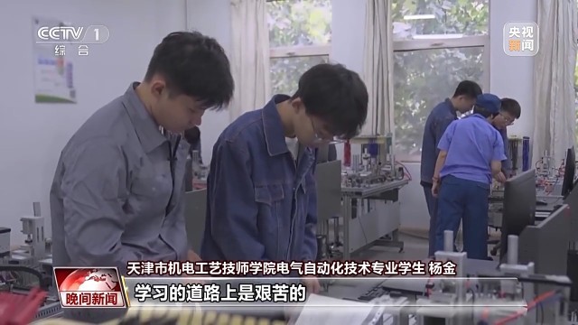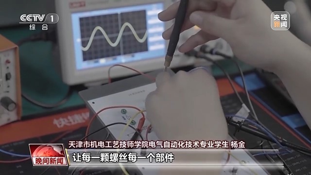 天津市机电工艺技师学院电气自动化技术专业学生 杨金:让每一颗螺丝每一个部件都发挥出它最大的作用,这就是我的心愿和目标了。未来希望自主去研发需要使用的机器,可以去创造更多属于咱们国人自己的电气化产品。